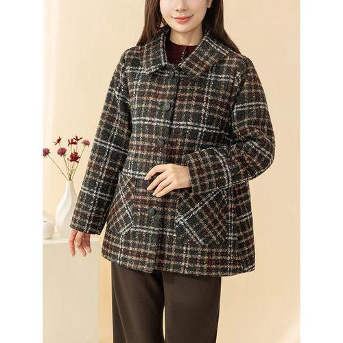 [디얼마미][디얼마미] 클래식 카라 체크 반 코트 /마담 미시 중년 여성 빅사이즈 40대 50대