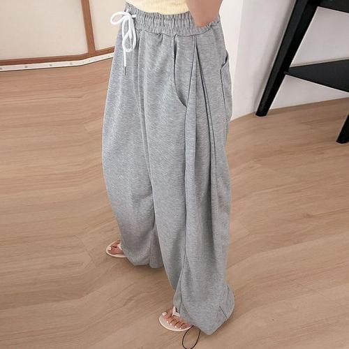 [유야]리본 면 와이드 일자 트레이닝 바지 츄리닝 밴딩 팬츠 발레코어 -PN0459H- 빅사이즈 루즈핏 여성 ..