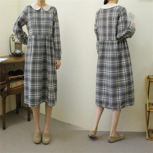 [셀러허브_여성트랜드패션]위쉬몰 WB 타탄플랫퍼프롱원피스(B205H010) 빅사이즈