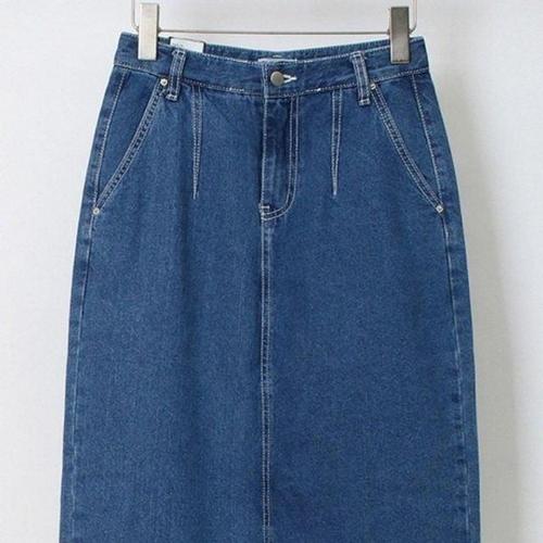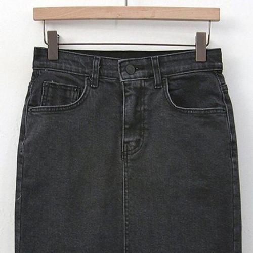 별하늘 뒤 트임 스판 롱 데님 스커트 여성용