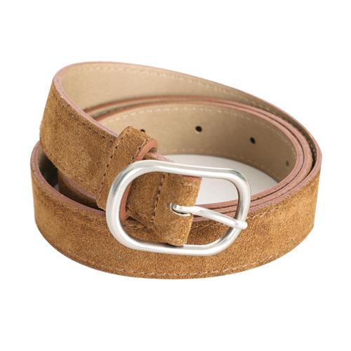 국산 여성 스웨이드 빈티지 무광 타원실버 버클 벨트 TU-WBT-0868-카멜