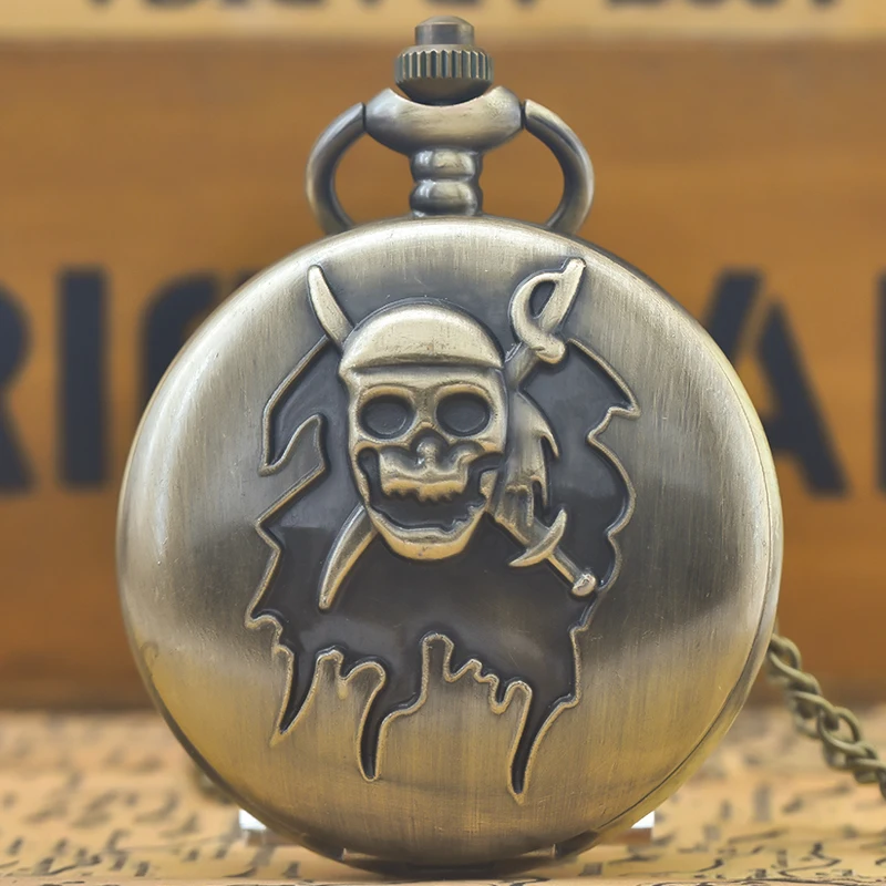빈티지 청동 대형 목걸이 석영 포켓 시계, 재미있는 무서운 유령 머리, 재미있는 할로윈 선물, 남녀 모두에게