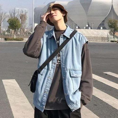 [셀럽하우스]데님 QXAF6376 빈티지룩 청자켓 베스트 청조끼 오버핏 패션루키