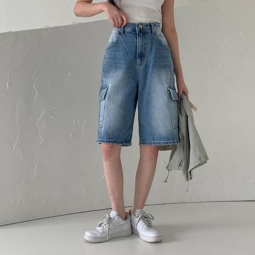 [페리엠]데님 워싱 빈티지 카고ST 버뮤다 로니캔데님팬츠