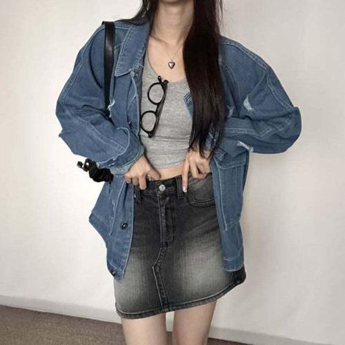 [셀럽하우스]여성 TTDJ2724 빈티지 찢청 청자켓 데님 자켓 간절기 아우터