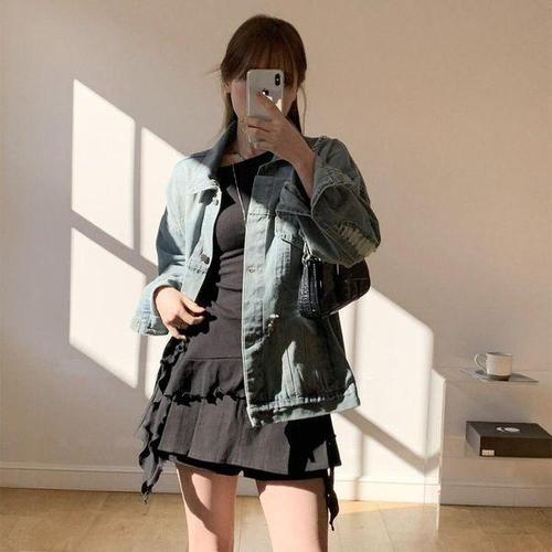 키체샵 남친 데님 빈티지 봄 가을 고급스러운 청자켓 워싱 경량 HO3