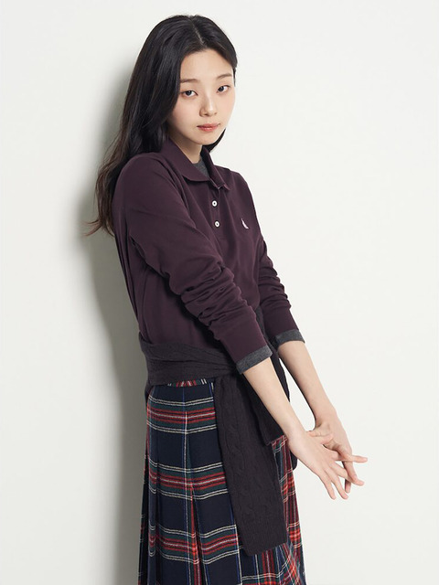 [빈폴레이디스] 레이어드 디테일 긴소매 피케 티셔츠와인 (BF5841C91Z)