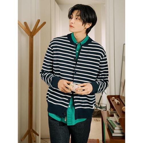 [빈폴멘]스트라이프 라운드 카디건 - 네이비 (BC515AC13R)
