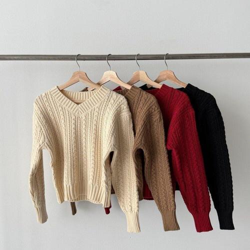 [다잇템][다잇템] 여성용 스웨터 V넥 FW 빨간 니트 꽈배기 데일리웨어_24170805_588872