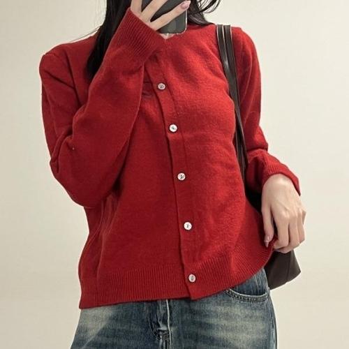 [다잇템][다잇템] 여자 빨간니트 라운드 울 일상룩 베이직 8컬러 가디건_23994174_588872