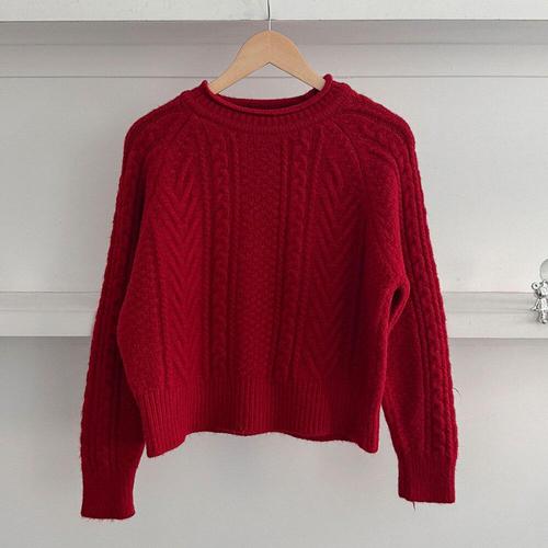 [다잇템]여성 크리스마스 FW 티셔츠 U넥 빨간 니트