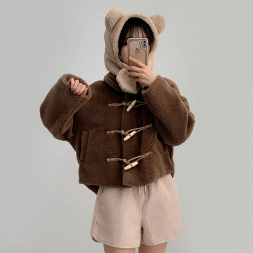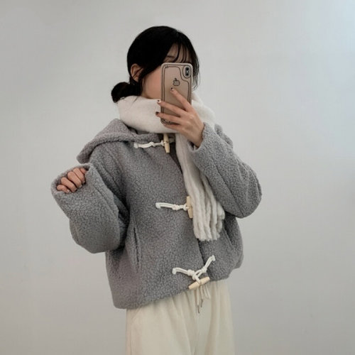입꼬 / 핀턱 뽀글이 후드 떡볶이 더플 숏코트2color
