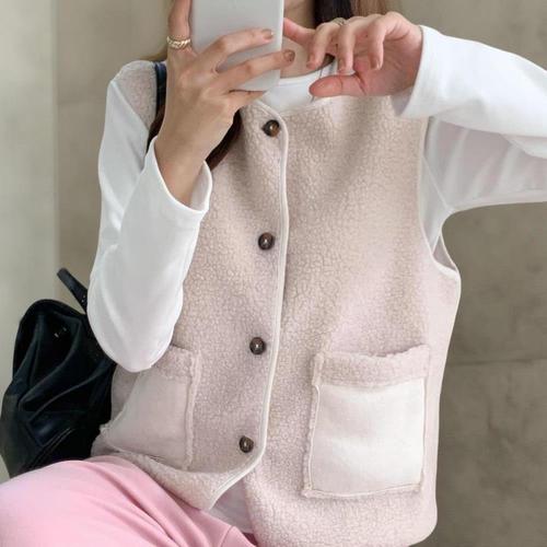 [옷자락] 여성 양털 조끼 겨울 이너 무스탕 포켓 단추 뽀글이