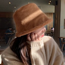 엠크루엘 무스탕 스웨이드 벙거지 뽀글이 양면 버킷햇 겨울 모자
