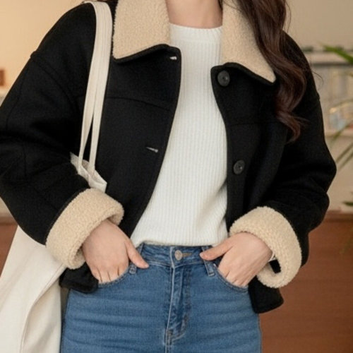 [옷자락] 여자 키치무드 뽀글이 카라넥 긴팔 퍼 자켓