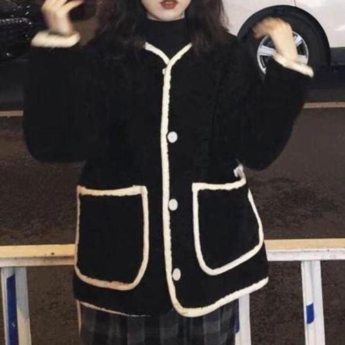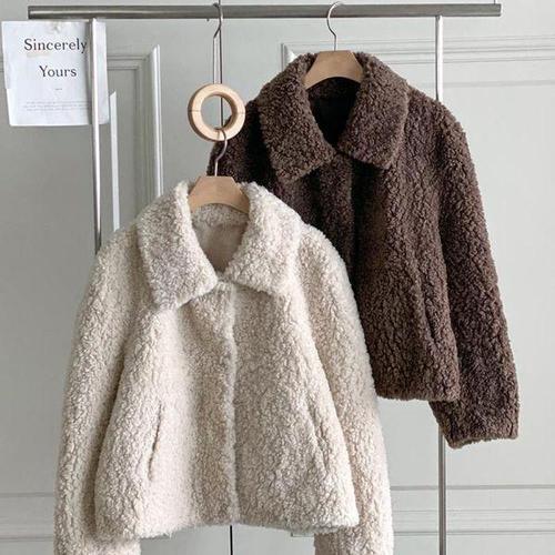 [셀러허브_여성트랜드패션]ONM 단추 뽀글이 자켓 부드러운 촉감 여성 퍼 가디건