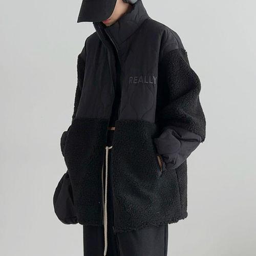 [오노마] ONM 레터링 배색 오버핏 뽀글이 양털자켓 커플룩 추천 41583949)