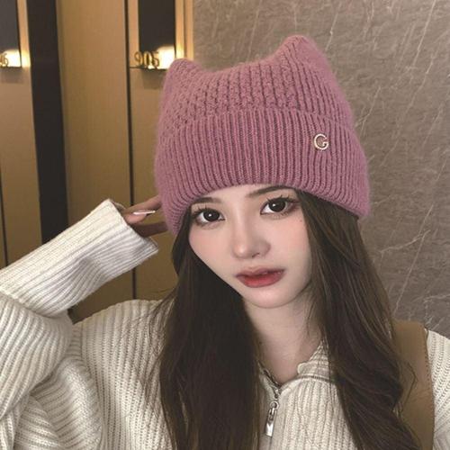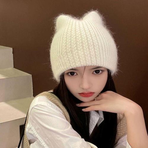 [XBI8LK1L]여성 고양이귀 귀여운 뿔비니 겨울 니트 털