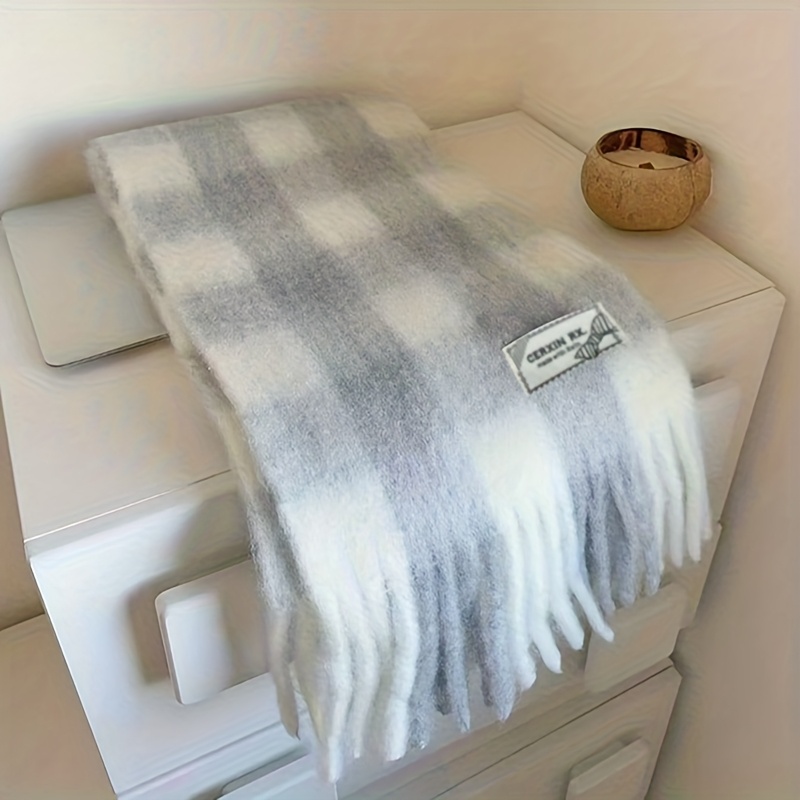 TEMU 새로운 가을/겨울 컬렉션 따뜻한 톤 프린지 오버사이즈 스카프, 다용도 및 두꺼운 디자인, 대비되는 체크무늬 패턴, 따뜻하게 입기 좋음