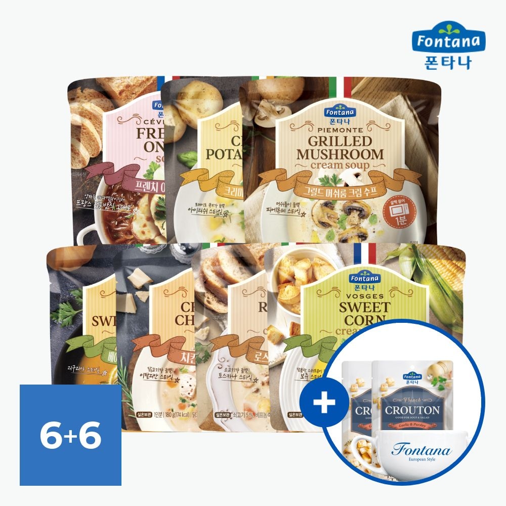 전자레인지용 수프 8종 6+6 골라담기 +양손수프컵&크루통*2 증정