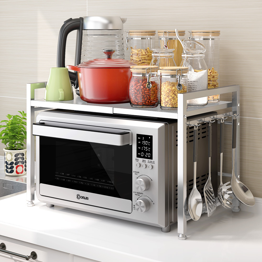 TEMU 시노아 스테인리스 전자레인지 선반 1단,화이트 분체도장,길이 조절 가능한 확장형 주방 수납 선반