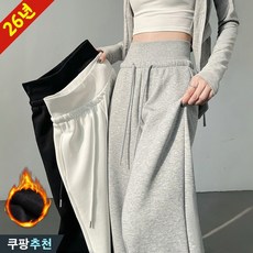 (25년 신상) 날씬해보이는 여성 시카고 유니크 그레이 트레이닝 팬츠 가을 겨울 편한 기모 보온 모던 와이드 밴딩 스트링 하이웨이스트 드레이프 일자 무지 심플 학생 멋쟁이 바지