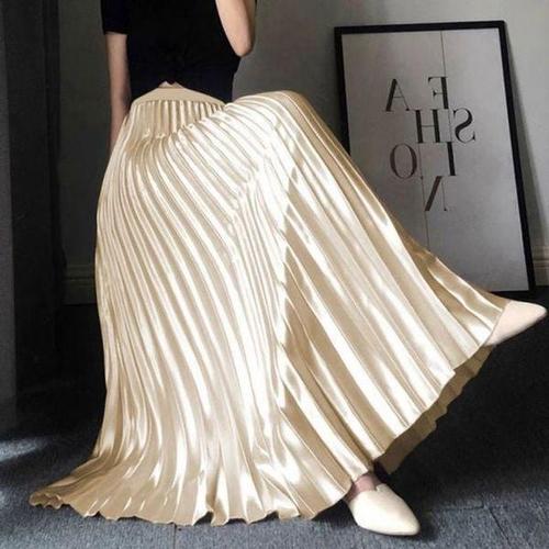 [에이치플러스몰]시그니처 고무줄 새틴 롱핏플리츠 미니스커트 치마