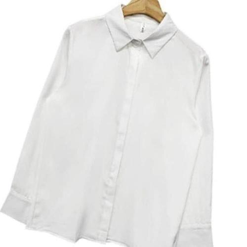 [에이치플러스몰]여성 3컬러 새틴 카라 샤이닝 블라우스 셔츠남방