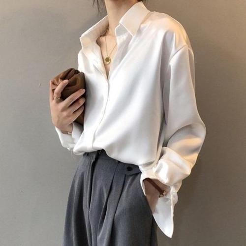 [엄지척]여자 카라 무지 스타일 새틴 블라우스 추천 데일리 긴_19649523_667501