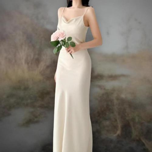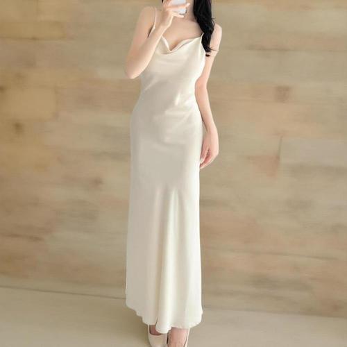 AOKADA 여성 새틴 롱 뷔스티에 원피스 여름 슬림 휴양지