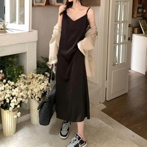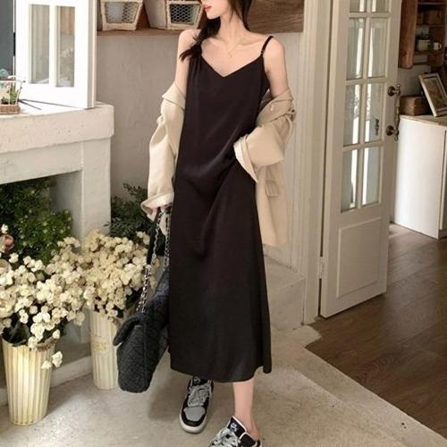 [엄지척]찰랑이는 새틴 여성 끈나시 A라인 롱원피스_19909987_667501