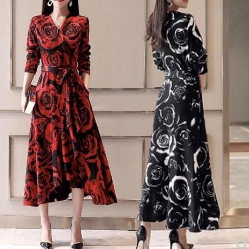 [엄지척](CESS) 1470 자가드 장미 원피스 2 반팔 새틴 롱원피_19957574_667501