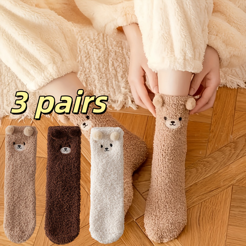 TEMU 여성용 겨울 따뜻한 플러시 두꺼운 곰귀 털 양말 3켤레 - 집에서 편안한 바닥 의류, 크리스마스/할로윈/추수감사절 선물, 귀여운 곰귀 디자인 (20+ 시나리오 호환) - 추운 날씨에 이상적