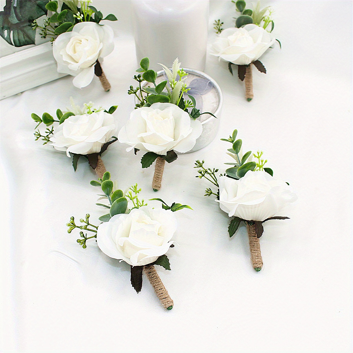 TEMU 인공 흰 장미 부토니에르 6개 팩, 남성용 원단 신랑 & 베스트 맨 웨딩 액세서리, 삼베 로프 & 유칼립투스, 배터리 불필요, 약혼, 결혼식, 기념일, 공식 행사 & 귀국 장식에 완벽