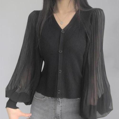 [신상오픈런]여성 브이넥 블라우스 가디건 골지 패턴 러블리 스타일