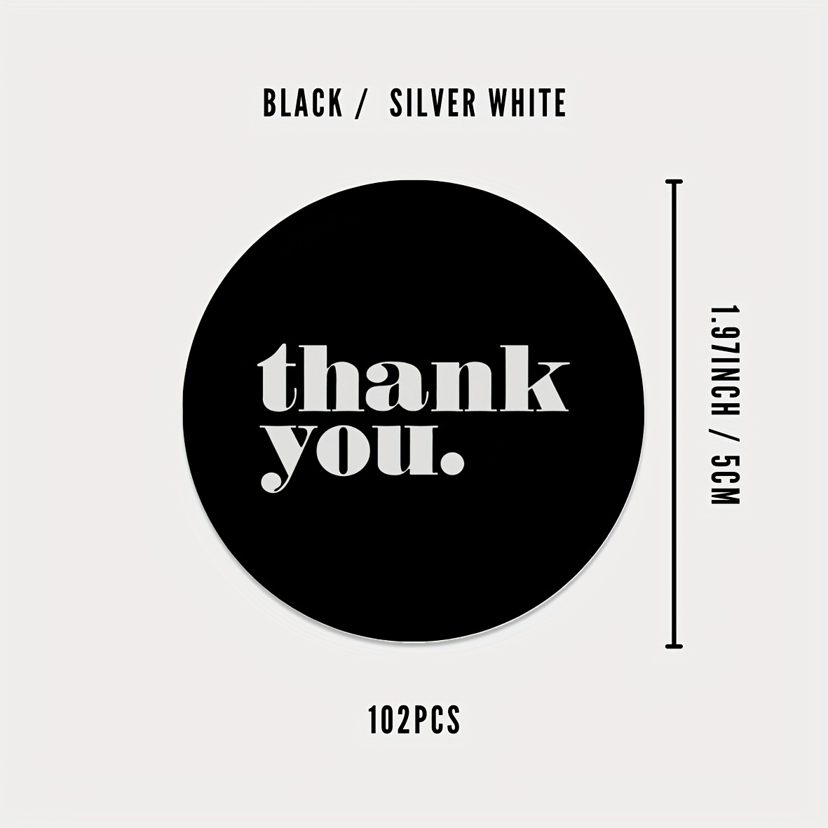 TEMU 102개 2인치 5cm 라운드 자체 접착용 단용 반가리 그래픽 패턴 영어 쓰여진 미니멀 감사 스티커, 흑백, 시원한 은색 톤, 종이로 만든, 인사 카드, 선물 상자, 파티 선물, 밀봉된 편지, 온라인 소매점, 소규모 기업, 지역 상점
