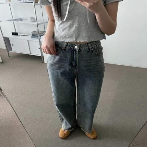 여자 그레이워싱 스트레이트핏 데님팬츠 서지컬청바지
