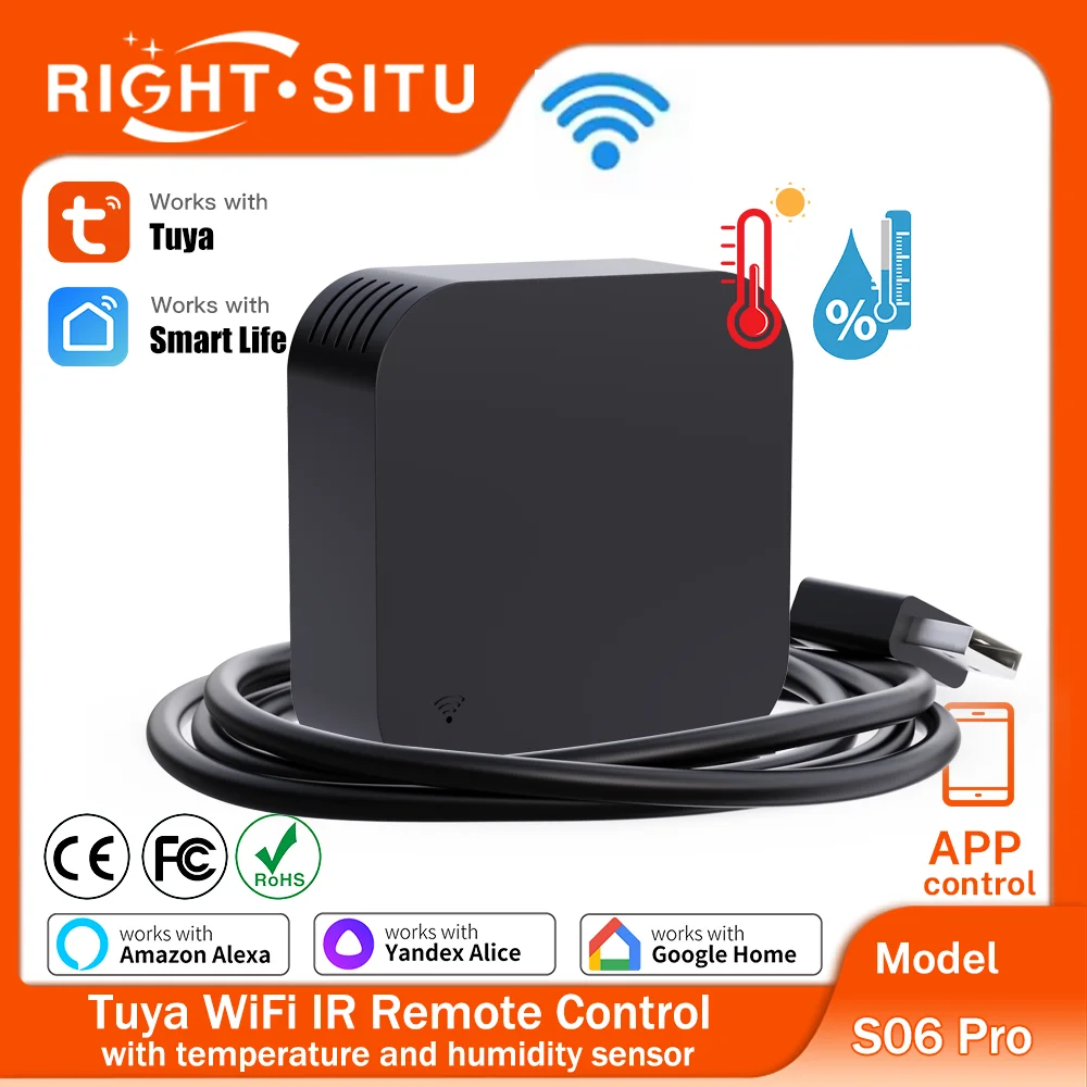 Tuya 온습도 센서 IR 리모컨 포함 WiFi 앱 원격 제어 스마트라이프 TV 에어컨용 얀덱스 알렉사와 호환