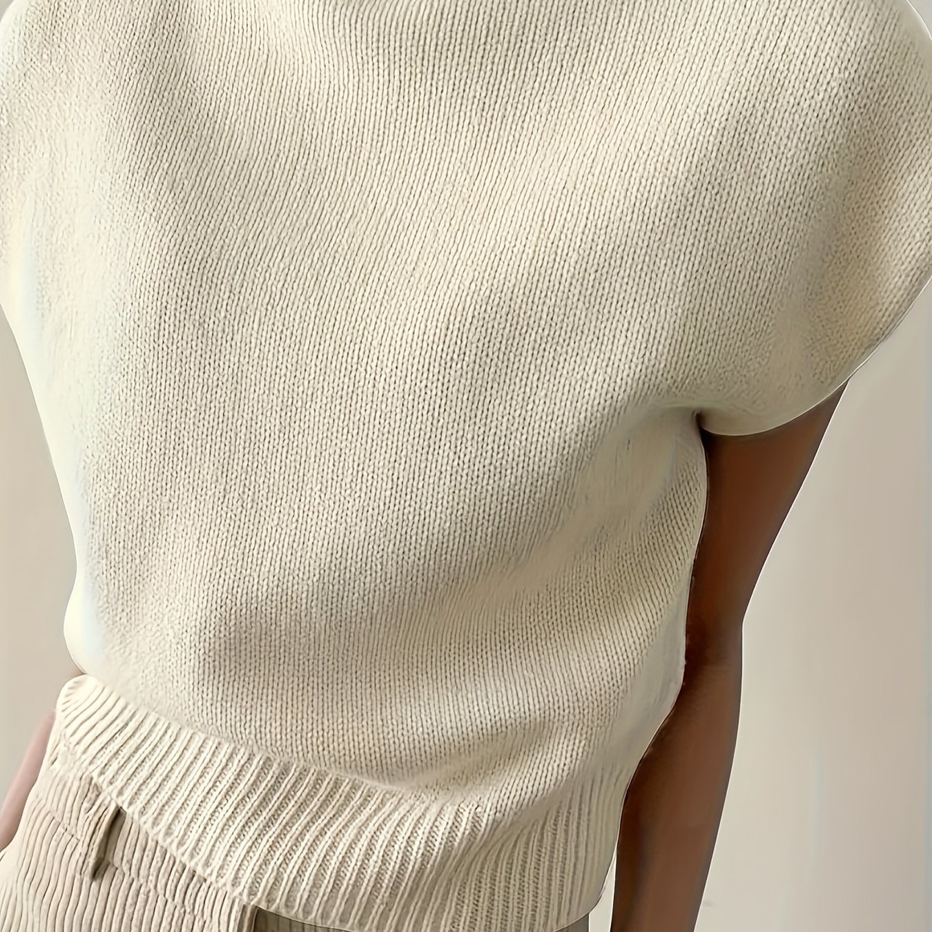 TEMU 플레임 엘레강트 하이넥 루즈 캐주얼 멀티펑셔널 민소매 스웨터 베스트 여성용 아우터웨어|민소매