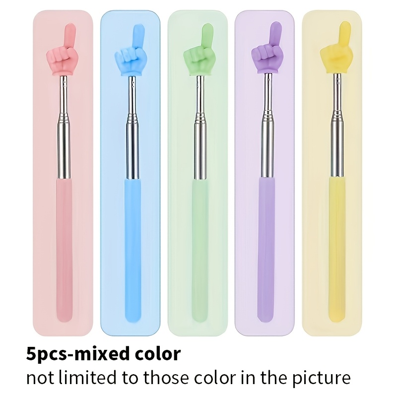 TEMU 파스텔 컬러 5개입 손가락 포인터 스틱 - 미니 손 모양 확장형 교사용 포인터 (교실, , 사무실용) - 학생, 발표자, 교사를 위한 눈에 띄지 않는 디자인
