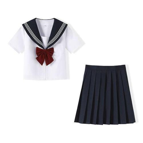 플러스 사이즈 세일러복 유니폼 JK 교복 긴팔 반팔 폴로넥 투피스 세트 기본 스타일 중간 길이 스커트