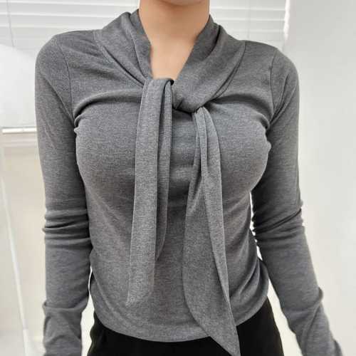 설세라 / 리본 타이 스카프티셔츠 피치기모티
