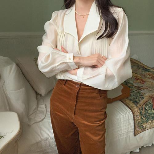 세라 블라우스 플리츠 긴팔 셔츠 탑