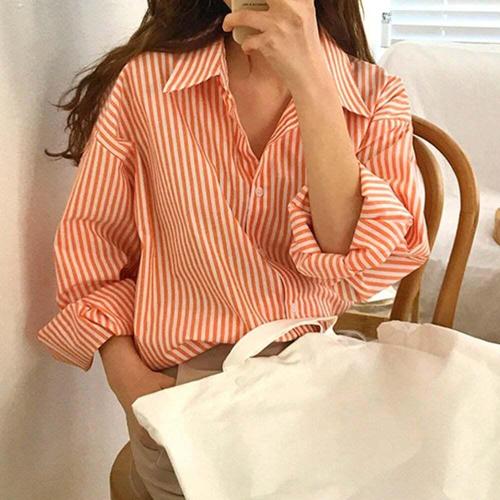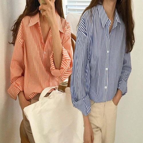 [셀럽하우스]여성 RNOF7646 후레쉬 컬러 세로 스트라이프 루즈핏 셔츠 남방