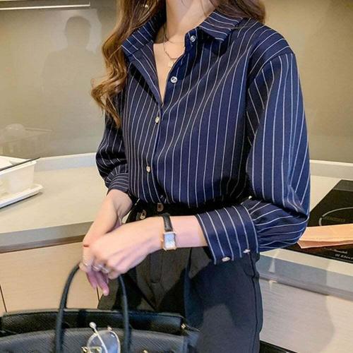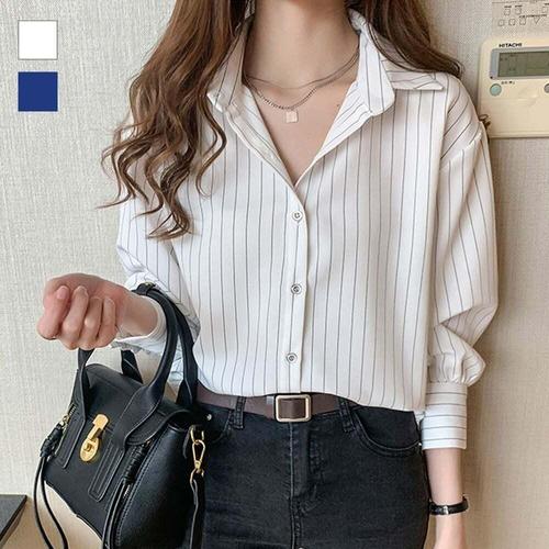 [셀럽하우스]봄 TEGK7167 가을 여자 여유핏 세로 스트라이프 긴팔 셔츠 남방