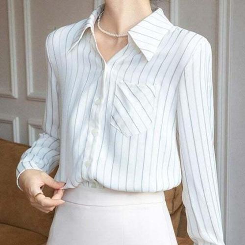 [셀럽하우스]원컬러 NONS6465 세로 스트라이프 여성 오피스 셔츠