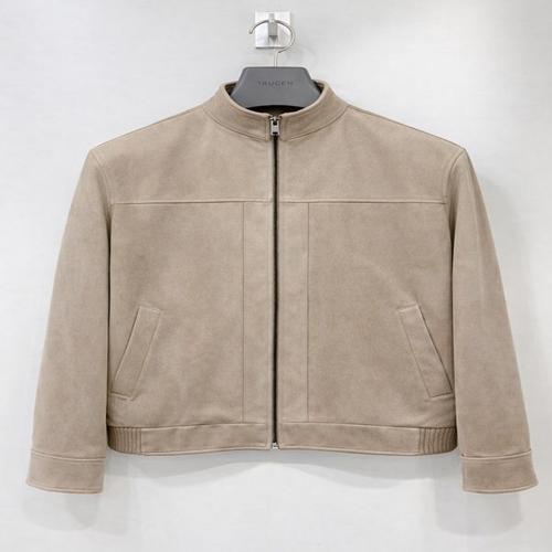 [트루젠]남성 간절기 봄 스탠카라 스웨이드 세무 트러커 라이더 자켓 집업 하프 숏점퍼 베이지 컬러