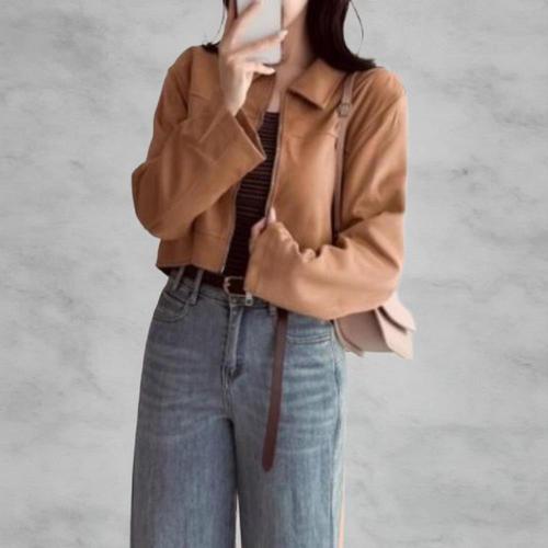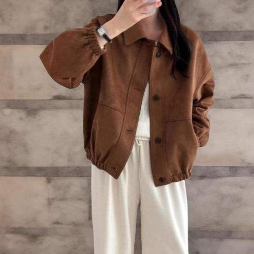 MOSAIRATION 스위트 앤쿨 칼라 스웨이드 집업 여성 아메리칸 캐주얼 오버핏 재킷 Z16