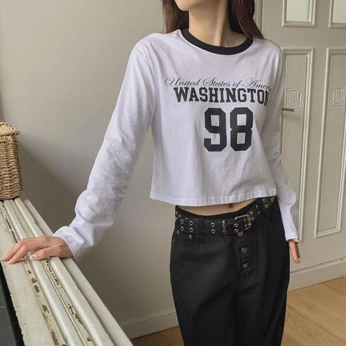 [옷자락] 여자 키치무드 코튼 레터링 세미크롭 긴팔 티셔츠