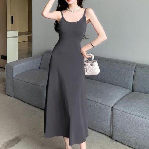 베이직 세미플레어 페미닌 깔끔 일상용스트링 미니드레스